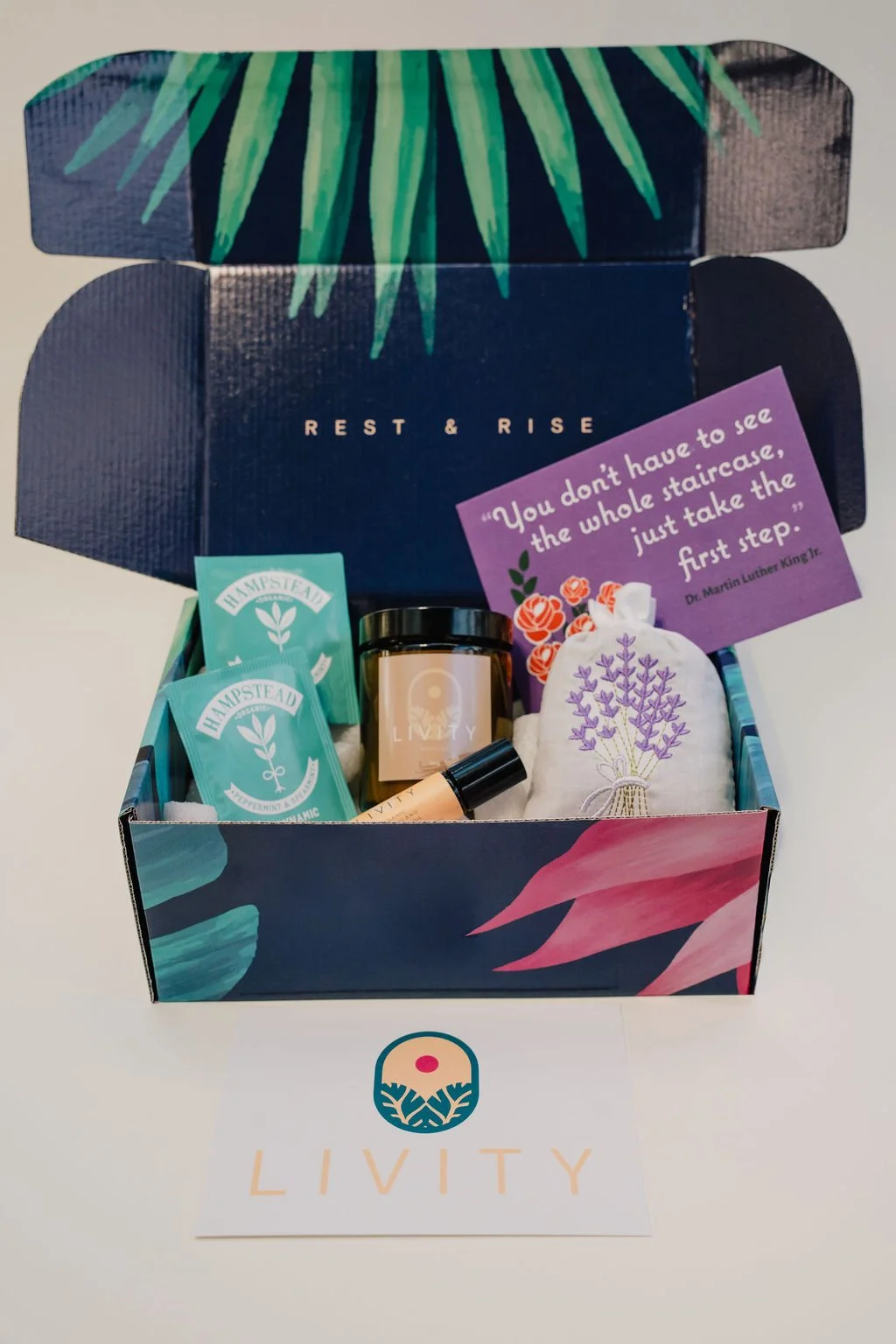 Livity was built to close that gap. Every box is curated by Dr Chanelle Myrie, an HCPC-registered Consultant Clinical Psychologist with 15 years of clinical experience, using evidence-based tools designed to support nervous system regulation and stress management.